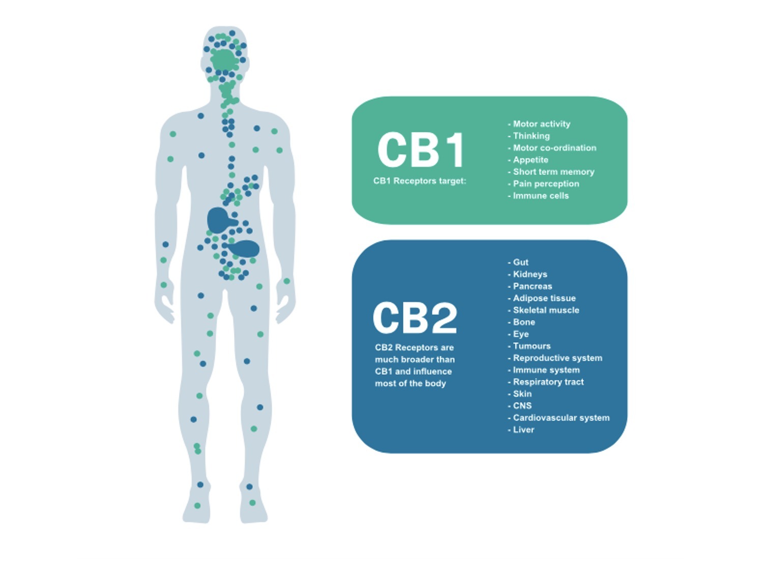 しかし、CBDの先進的研究をしているイスラエル、カナダ、アメリカの科学者により近年、なぜCBDがハーブとして、漢方薬として効果があるのかが徐々に解明されてきています。上述したてんかんのシャーロットちゃんの例を見ても分かりますが、CBDオイルを摂取することで近代医薬では起こらなかった変化が体内で起こっていることは明らかです。その1つの理由が、ヘンプに含有するカンナビノイドと同じものを、進化の過程の中で人間を含む哺乳類が持っているということです。医学的には,エンドカンナビノイドシステムと言われ、食欲、痛み、免疫調整、感情制御、運動機能、発達と老化、神経保護、認知と記憶などの機能をもち、細胞同士のコミュニケーション活動を支えている仕組みです。体内カンナビノイドと、人間の体の至る所にそれらと結合する神経細胞上に多いカンナビノイド受容体“CB1”、免疫細胞上に多いカンナビノイド受容体“CB2”などで構成され、これが正常に稼働している時には人間は健康ですが、これが壊れたり、消滅したりすると病気になることがわかってきています。CBDオイルを摂取することにより、体内にカンナビノイドを導入することができ、それが壊れたカンナビノイド受容体を修復する働きを行なっていることがわかってきました。同じ起源を持つカンナビノイド同士が上手に働いて、近代医薬では反応しなかったてんかんの起こる原因となる損傷を修復したと考えられます。ですので、よくCBDは何に効果があるのですか、と聞かれますが、人によって損傷している部分が違うので、その人が抱えている問題部分にアプローチしますという回答になります。